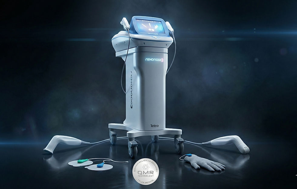 1. Rexonage 3 (QMR) – Regeneracja komórkowa bez ciepła To nasza technologiczna perełka. Rexonage wykorzystuje rezonans molekularny kwantowy (QMR). Brzmi kosmicznie, ale zasada jest prosta i bezpieczna.